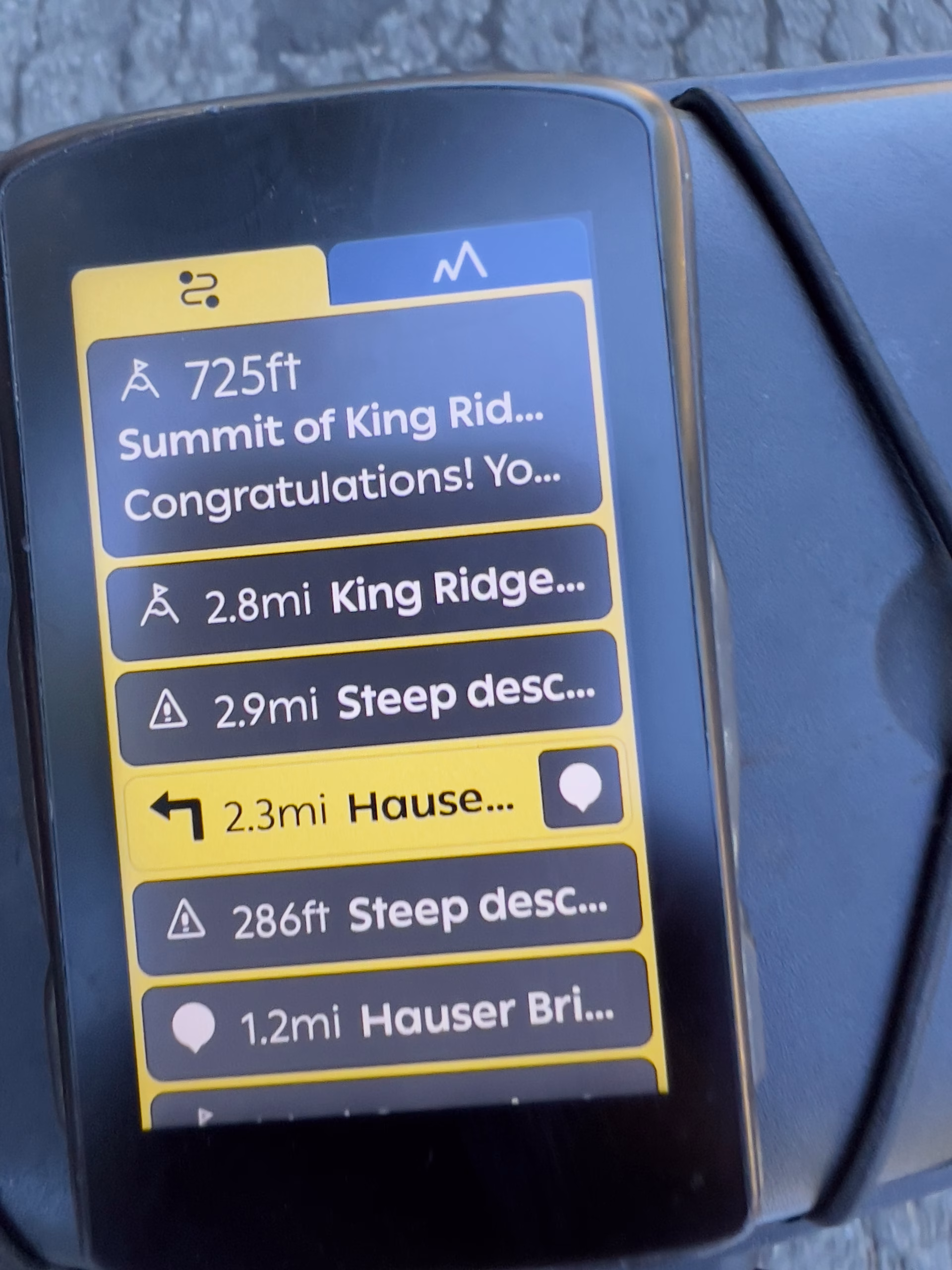 As for gearing, Comova’s rental bikes are set up with a 38-tooth chainring and a 42-tooth large cog for a gear ratio of .90. Not only does the King Ridge route throw 5,100’ of climbing at you, but there are about two miles (3km) of climbing at gradients above 10%. Unless you are really fit, you’ll want at least a 1.00 gear ratio (e.g., 42X42).